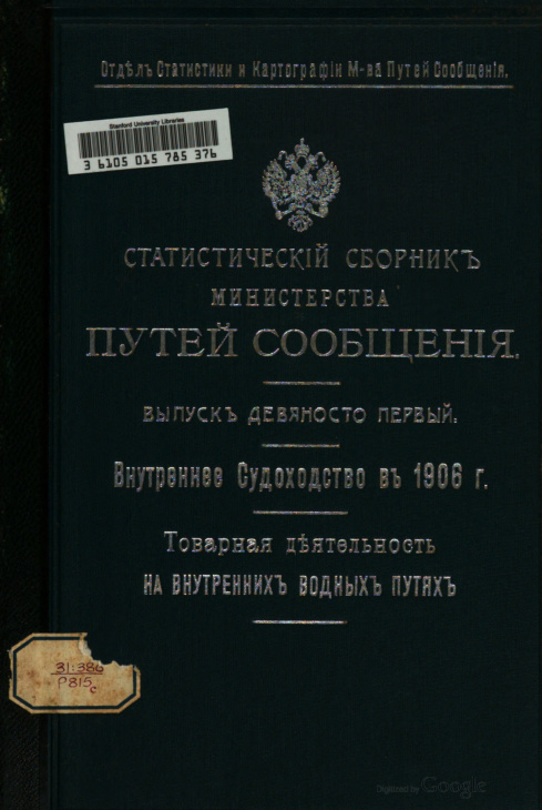 Отдел Статистики и Картографии Министерства Путей Сообщения. С.-Петербург, 1908