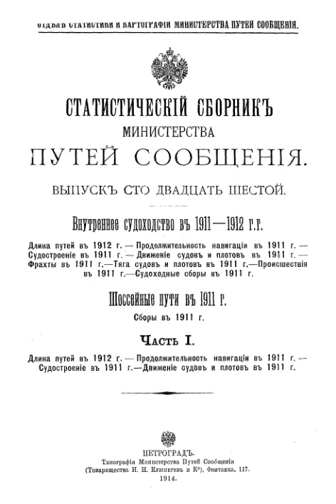 Статистический сборник Министерства путей сообщения. Выпуск 126. Внутреннее судоходство в 1911-1912 и Шоссейные пути в 1911. Часть 1