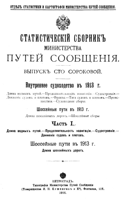 Отдел Статистики и Картографии Министерства Путей Сообщения. Петроград, 1916