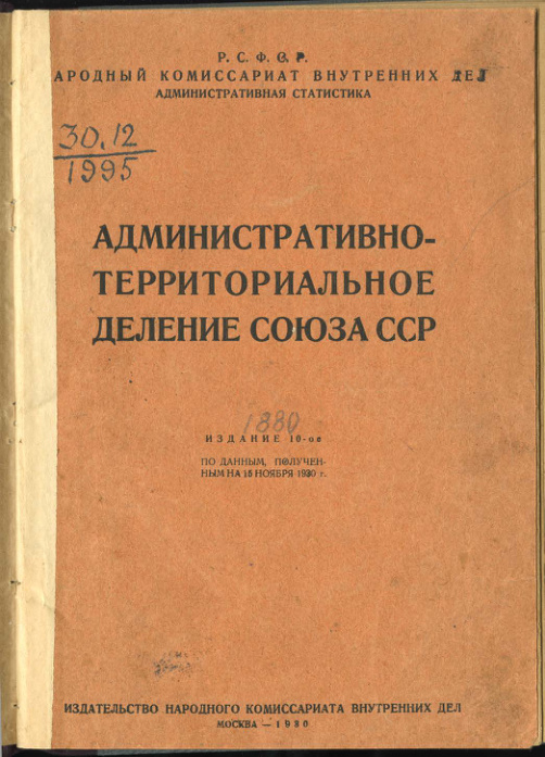 Административно-территориальное деление Союза ССР по данным на 15-е ноября 1930 г.