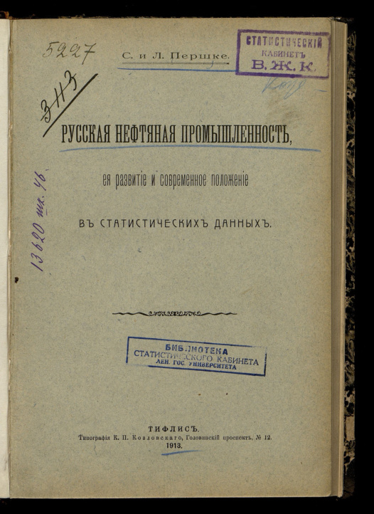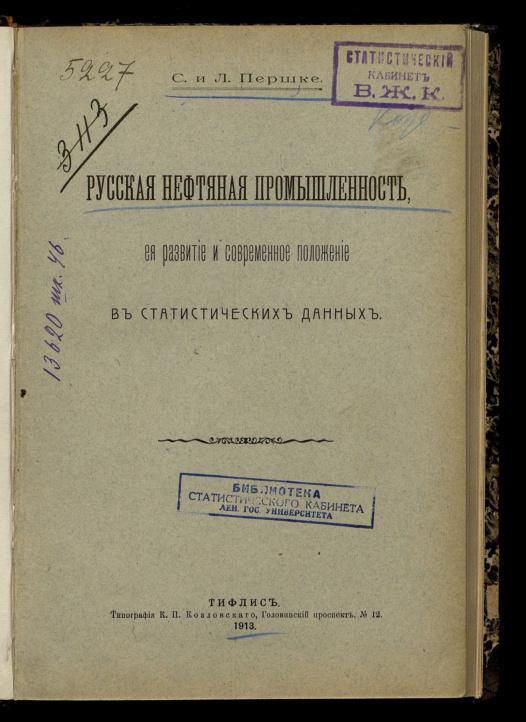 Русская нефтяная промышленность, ее развитие и современное положение в статистических данных. 1913
