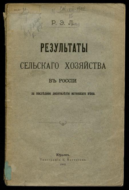 Результаты сельского хозяйства в России за последнее десятилетие истекшего века. 1902