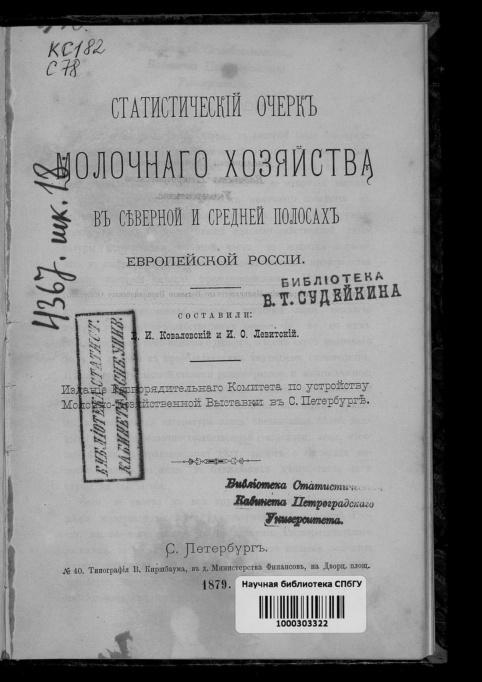 Статистический очерк молочного хозяйства в северной и средней полосах Европейской России. 1879