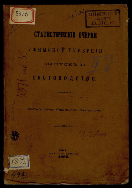 Статистические очерки Уфимской губернии. Выпуск II. Скотоводство. 1882