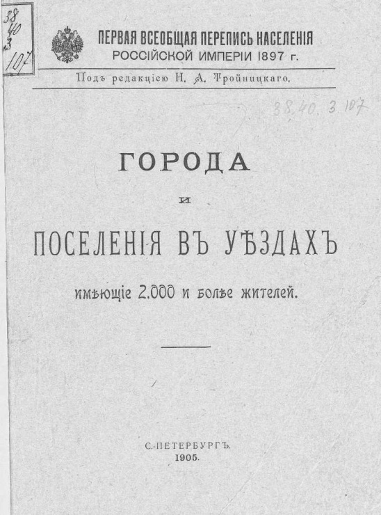 Города и поселения в уездах, имеющих 2000 и более жителей. 1905
