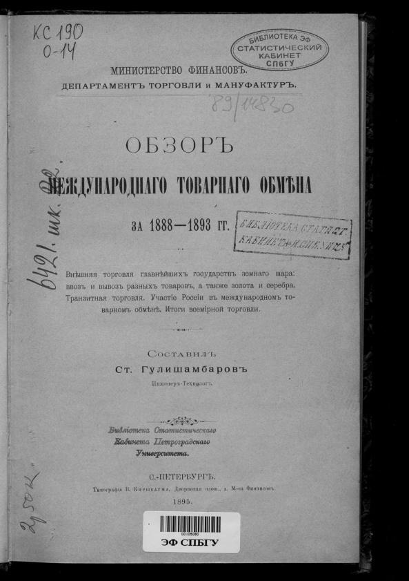 Министерство Финансов. Департамент торговли и мануфактур. С.-Петербург, 1895