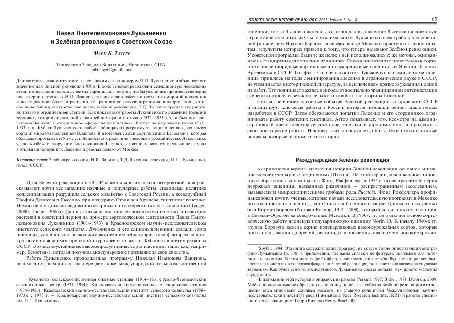 Studies in the History of Biology. 2015. Volume 7. No. 4 Стр. 64-89