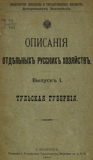 Министерство Земледелия и Государственных Имуществ. Деп. Земледелия. С.-Петербург, 1897-1898