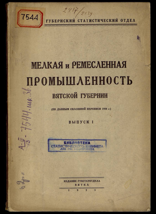 Мелкая и ремесленная промышленность Вятской губернии (по данным сплошной переписи 1928). Выпуск 1