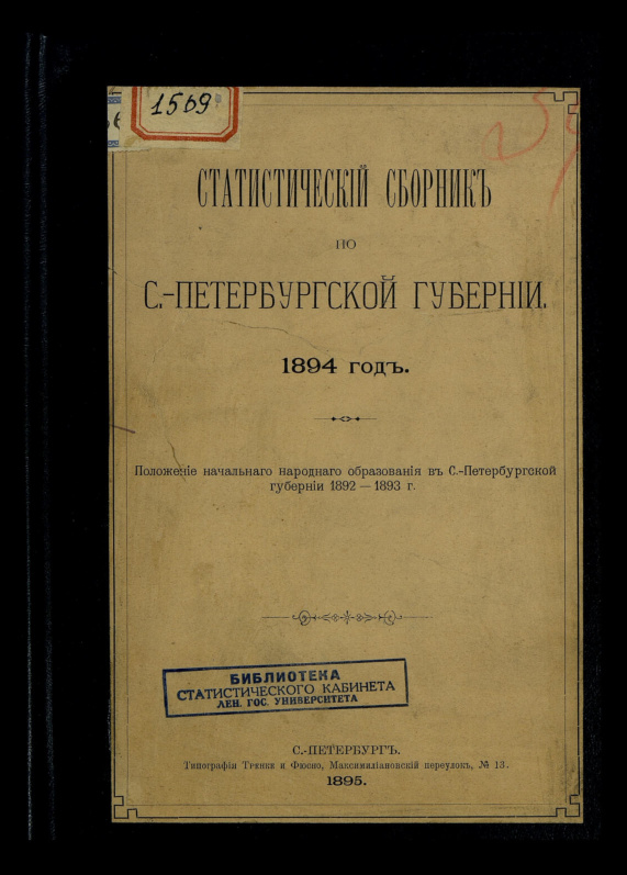 Статистический сборник по С.-Петербургской губернии. 1894 год