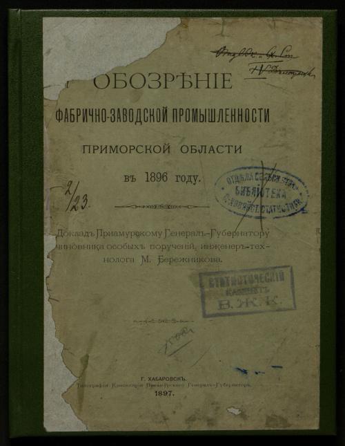 Обозрение фабрично-заводской промышленности Приморской области в 1896 году