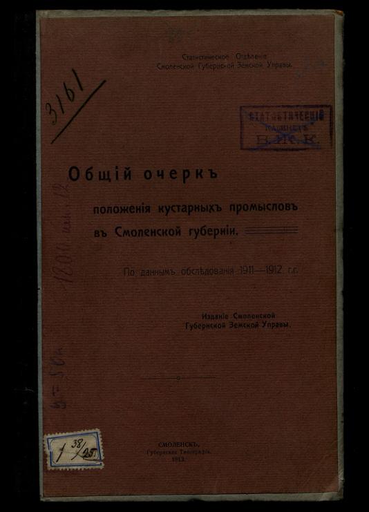 Общий очерк положения кустарных промыслов в Смоленской губернии. По данным обследования 1911-1912 г.г.