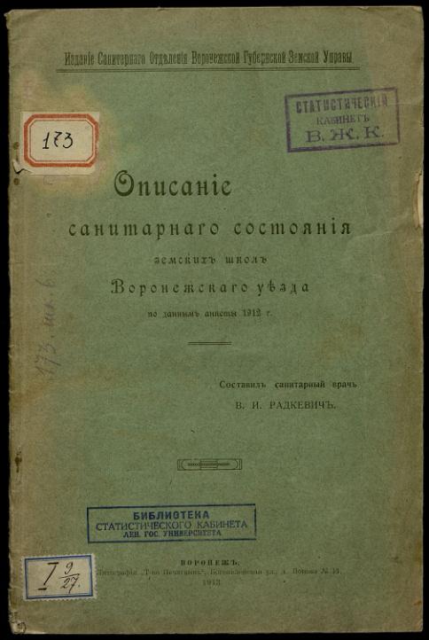 Издание Санитарного Отделения Воронежской Губернской Земской Управы. Воронеж, 1913