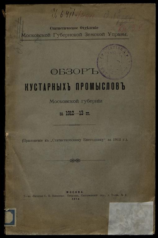 Обзор кустарных промыслов Московской губернии за 1912-13 гг.