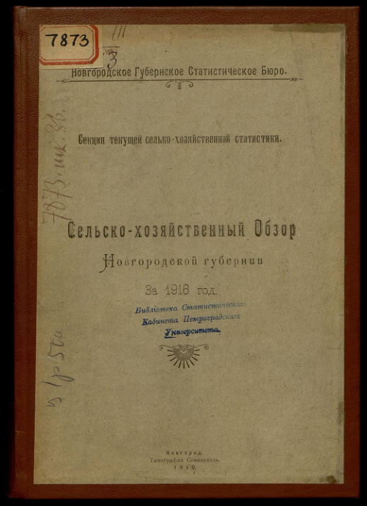 Новгородское Губернское Статистическое Бюро. Новгород. Типография Совнархоза, 1919