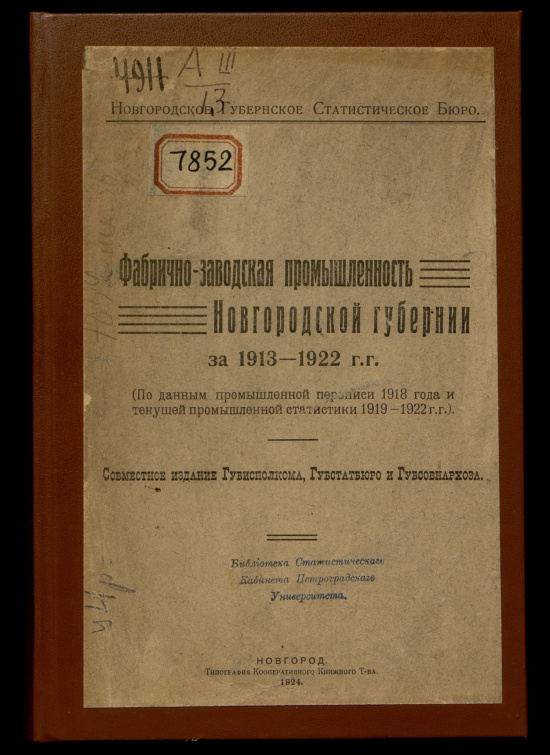 Новгородское Губернское Статистическое Бюро. Новгород, 1924