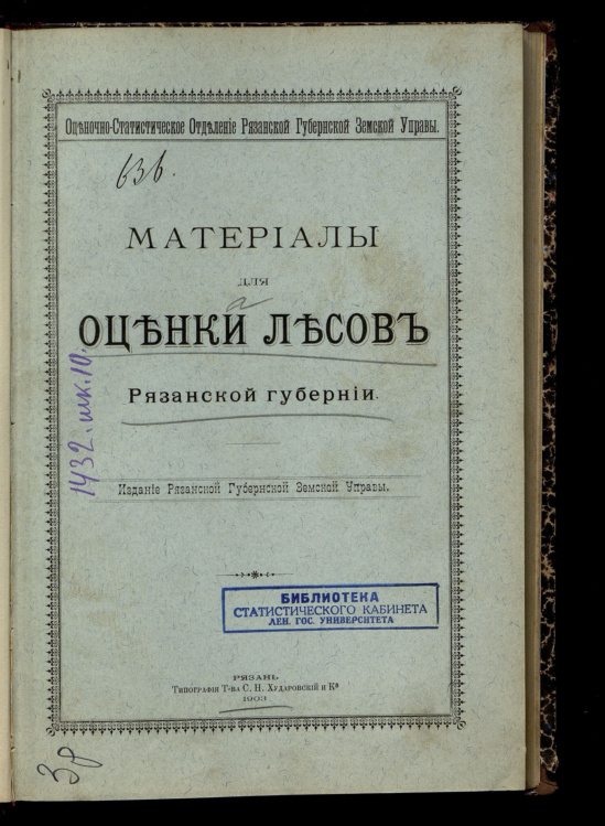 Материалы для оценки лесов Рязанской губернии 1903