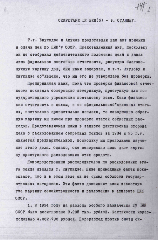 Справка о результатах проверки финансовой отчетности ЦИК СССР. 29 марта 1935 г.