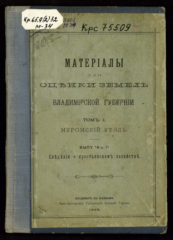 Материалы для оценки земель по Владимирской губернии