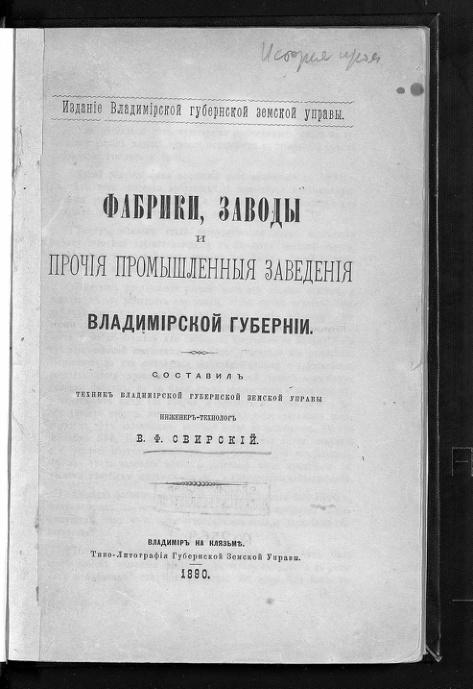 Фабрики, заводы и прочие промышленные заведения Владимирской губернии (1890)