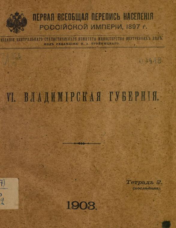 Перепись населения 1897 - Владимирская губерния. Тетрадь 2