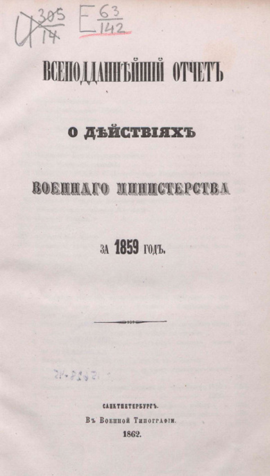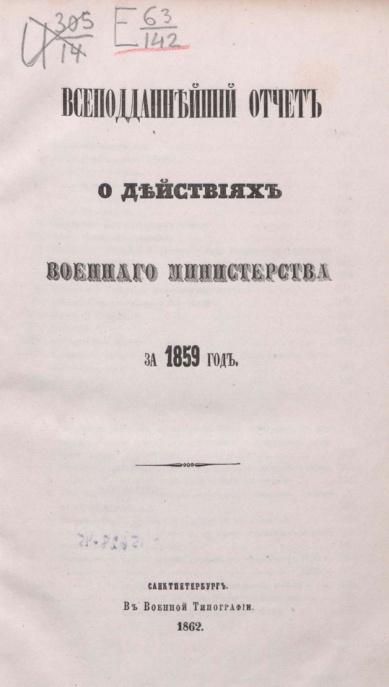Всеподданнейший отчёт о действиях военного министерства за 1859 год