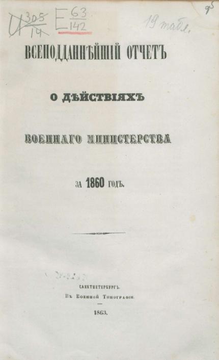Всеподданнейший отчёт о действиях военного министерства за 1860 год