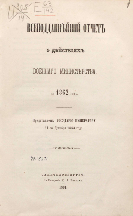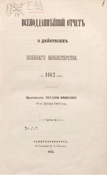 Всеподданнейший отчёт о действиях военного министерства за 1862 год