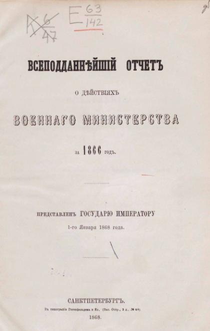 Всеподданнейший отчёт о действиях военного министерства за 1866 год