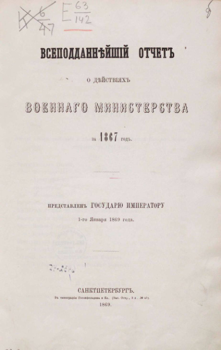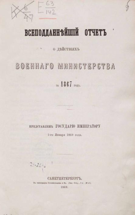 Всеподданнейший отчёт о действиях военного министерства за 1867 год