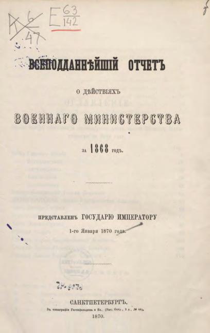 Всеподданнейший отчёт о действиях военного министерства за 1868 год