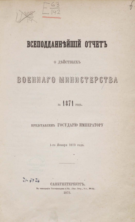 Всеподданнейший отчёт о действиях военного министерства за 1871