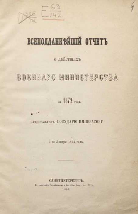 Всеподданнейший отчёт о действиях военного министерства за 1872
