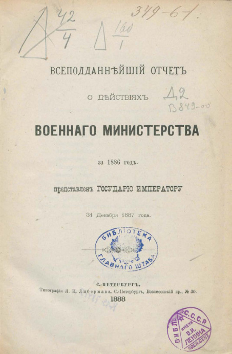 Всеподданнейший отчёт о действиях военного министерства за 1886