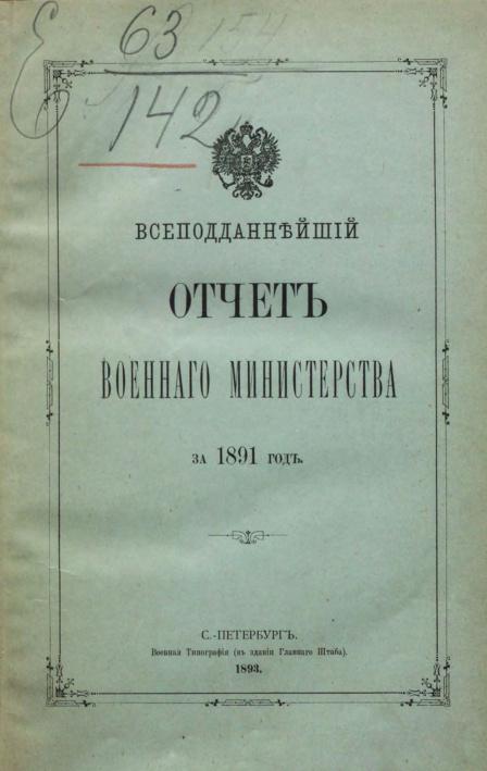Всеподданнейший отчёт о действиях военного министерства за 1891