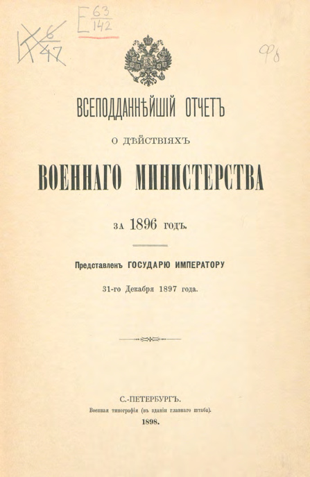 Всеподданнейший отчёт о действиях военного министерства за 1896