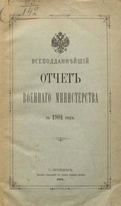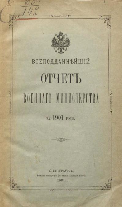 Всеподданнейший отчёт о действиях военного министерства за 1901