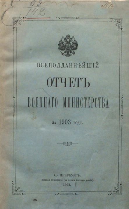 Всеподданнейший отчёт о действиях военного министерства за 1903 год