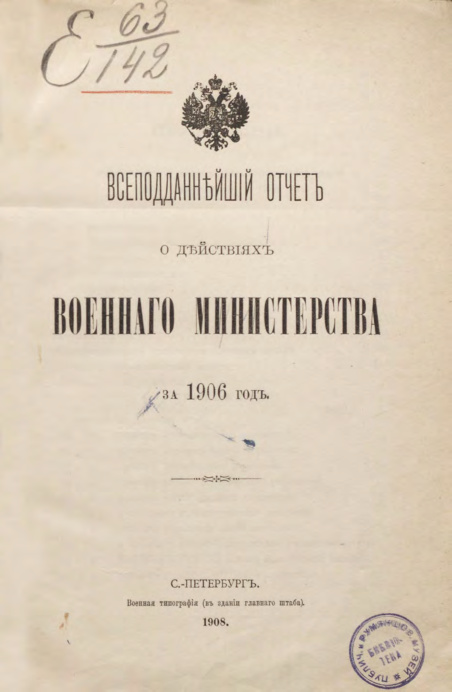 Всеподданнейший отчёт о действиях военного министерства за 1906 год