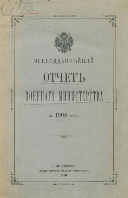 Всеподданнейший отчёт о действиях военного министерства за 1908 год