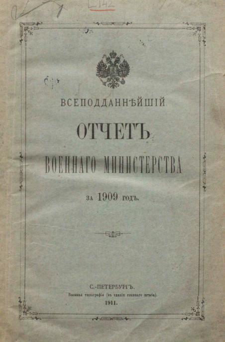 Всеподданнейший отчёт о действиях военного министерства за 1909 год