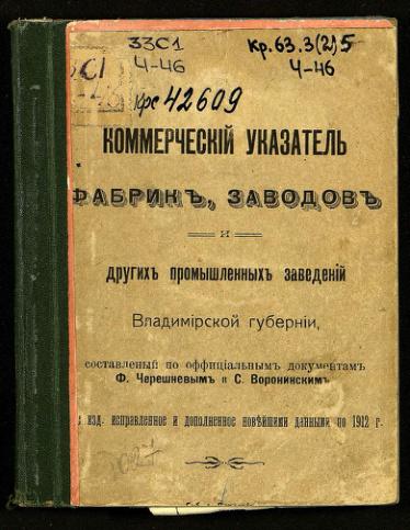 1912. Коммерческий указатель фабрик, заводов и других промышленных заведений Владимирской губернии