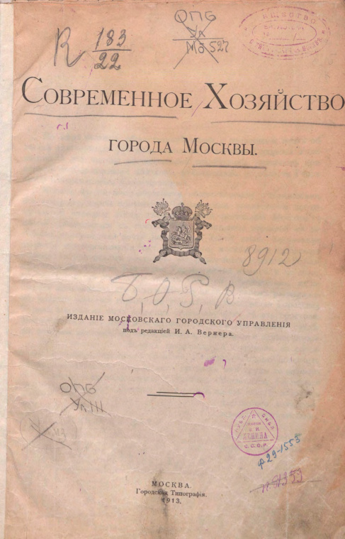 Издание Московского Городского Управления. Москва. Городская типография, 1913
