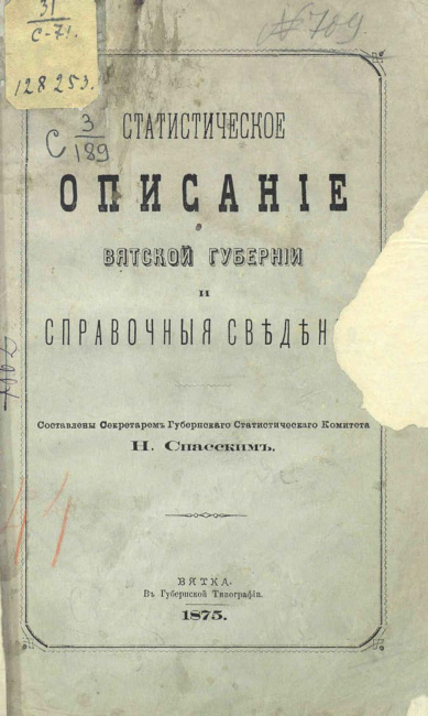 Статистическое описание Вятской губернии и справочные сведения (1875)