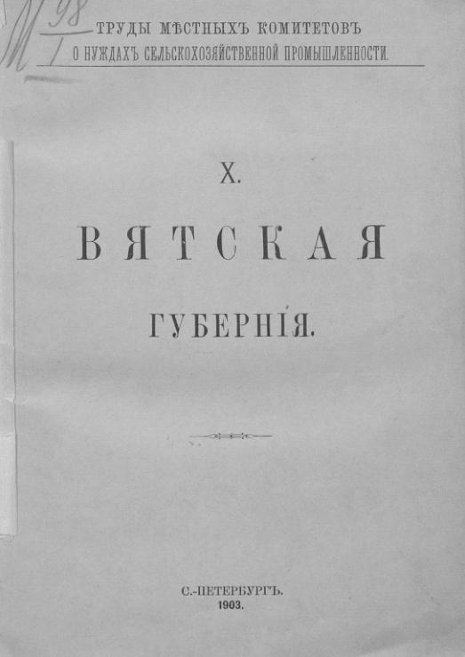 Труды местных комитетов о нуждах сельскохозяйственной промышленности - Вятская губерния (1903)