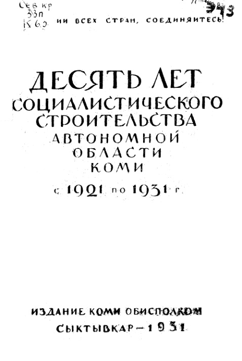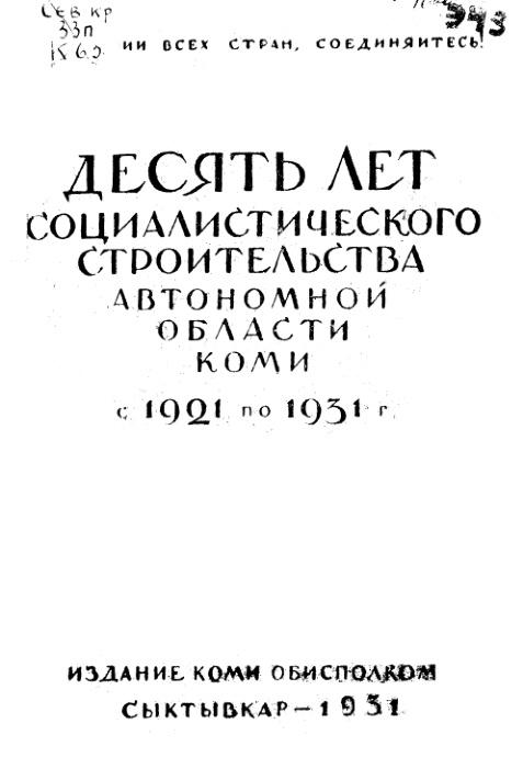 Десять лет социалистического строительства Автономной области Коми 1921-1931