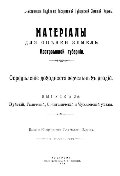 Материалы для оценки земель Костромской губернии - выпуск 2