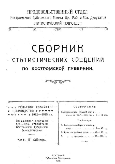 1918 Сборник статистических сведений по Костромской губернии