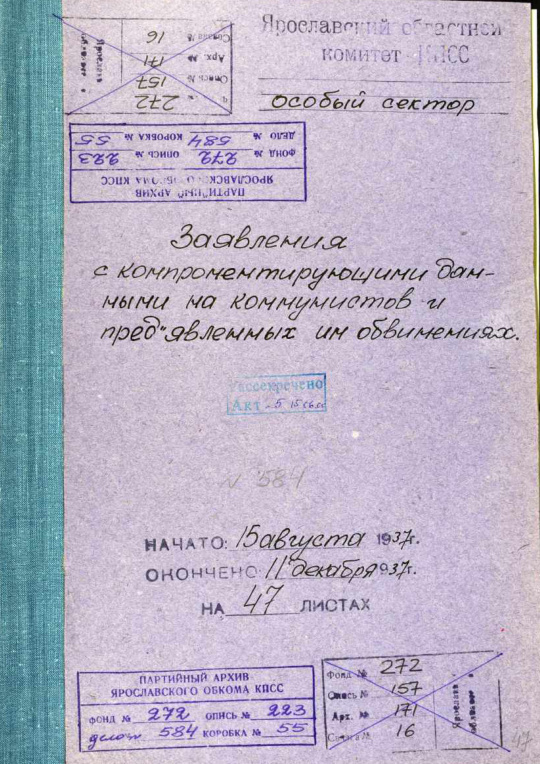 Заявления с компрометирующими данными на коммунистов и предъявленных им обвинениях. 15 августа-11 декабря 1937 г.