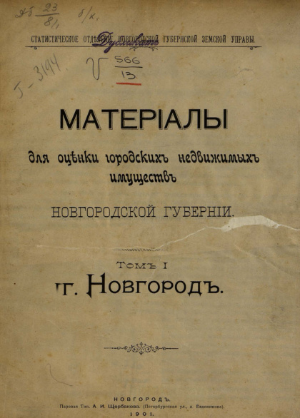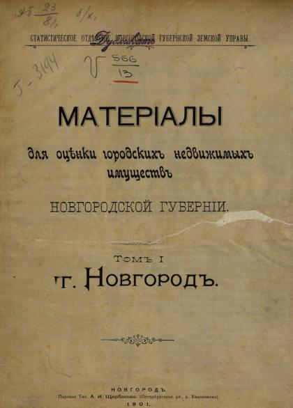 Материалы для оценки городских недвижимых имуществ Новгородской губернии